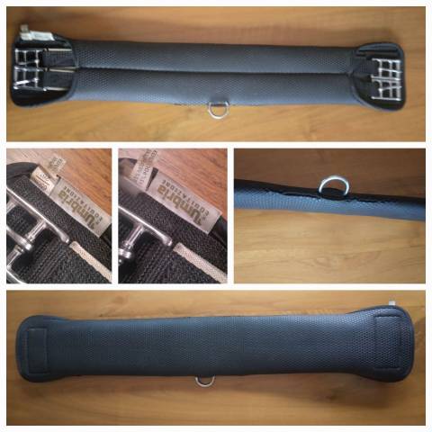 Sottopancia per cavalli da dressage in neoprene + poliestere con fibbie in acciaio inox, dotato di fascia elestica all'estremità per garantire un'ottima vestibilità e anello per gli attacchi opzionali.