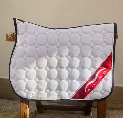 Sottosella Animo Bianco con bordi Navy Blu e Logo In Rosso.