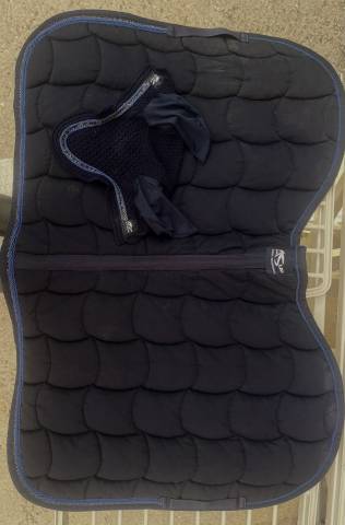 Sottosella e Cuffietta Anna Scarpati Blu Navy con cordoncini Blu Royal e Zirconi Blu.