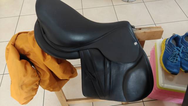 Vendo sella Butet Sellier Saumur modello Gold, da salto ostacoli, doppiata, seggio medio-profondo, misura 17".